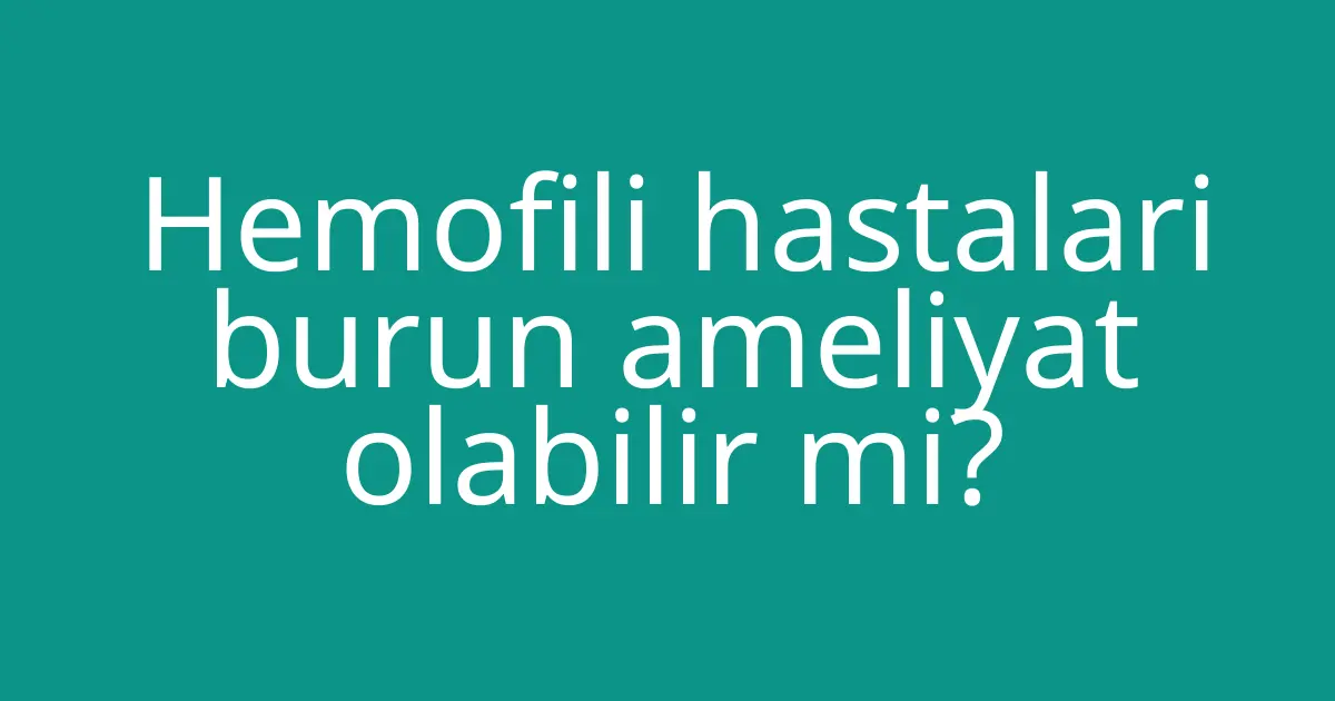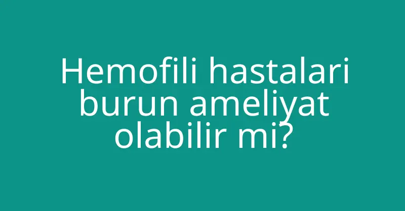 Hemofili hastaları burun ameliyat olabilir mi? Evet, hemofili hastaları, kapsamlı bir tıbbi değerlendirme ve sıkı tıbbi takip ile birlikte burun ameliyatı olabilir.